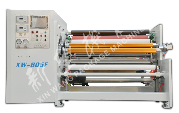 2、全自動復卷分切機修邊、噴膠、密封口、抽軸一瞬間同歩進行,使卷紙轉到帶鋸斷開及包裝時無紙型耗損。